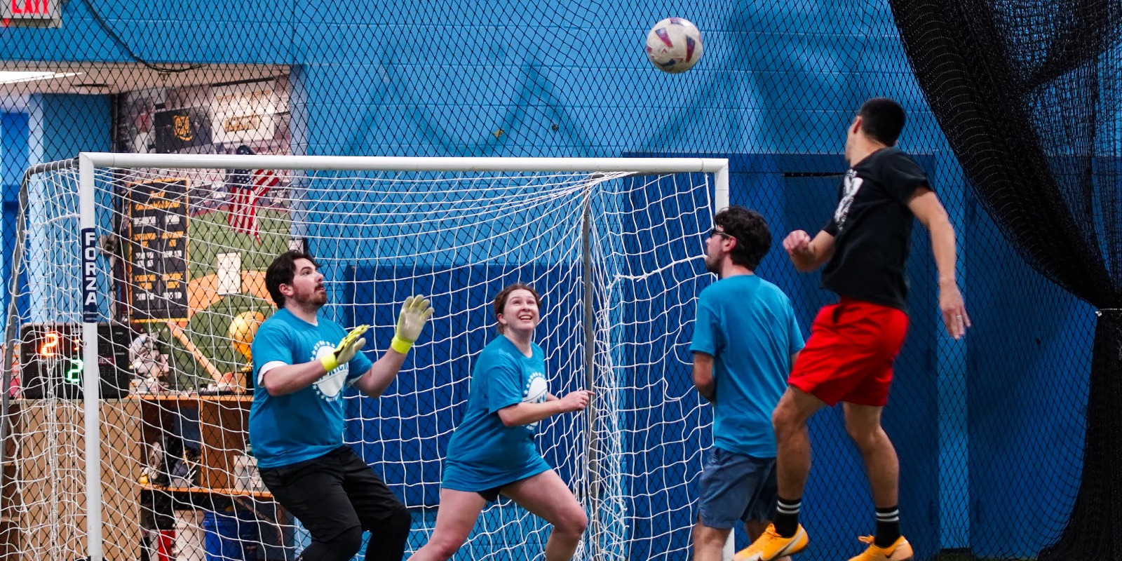 Indoor plays 5v5 (3m/2f). 5 includes the goalie.
