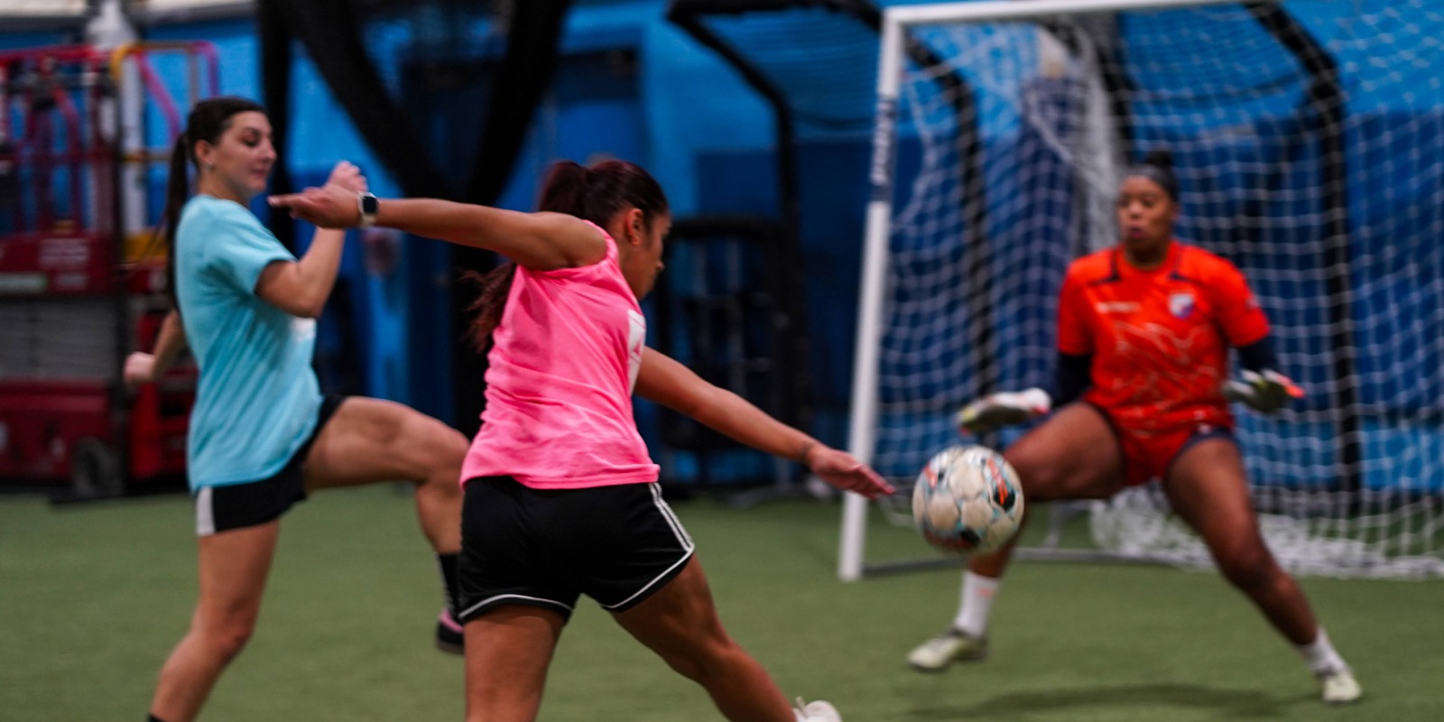 Indoor plays 5v5 (3m/2f). 5 includes the goalie.